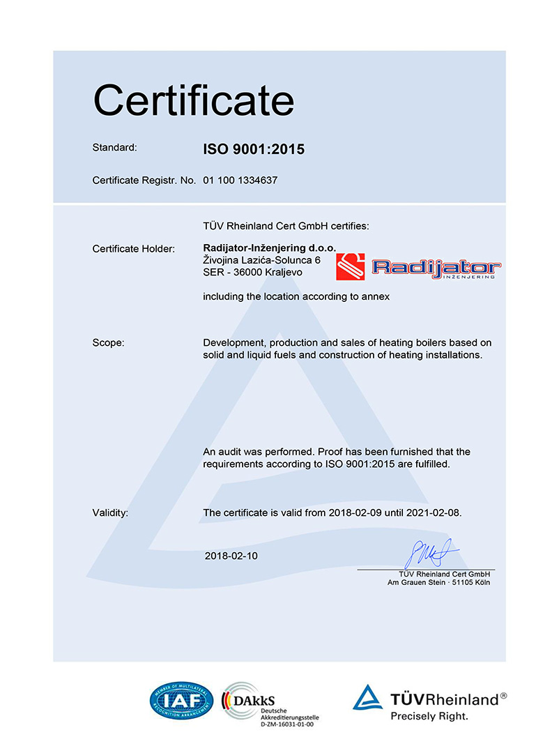 In business terms, Radjator Inženjering D.O.O. is a legal successor of a craftsman shop Radijator founded in 1991 whose main service has been the installation and maintenance of central heating up to this day. We made the first hot water boiler on solid fuel in 1985.